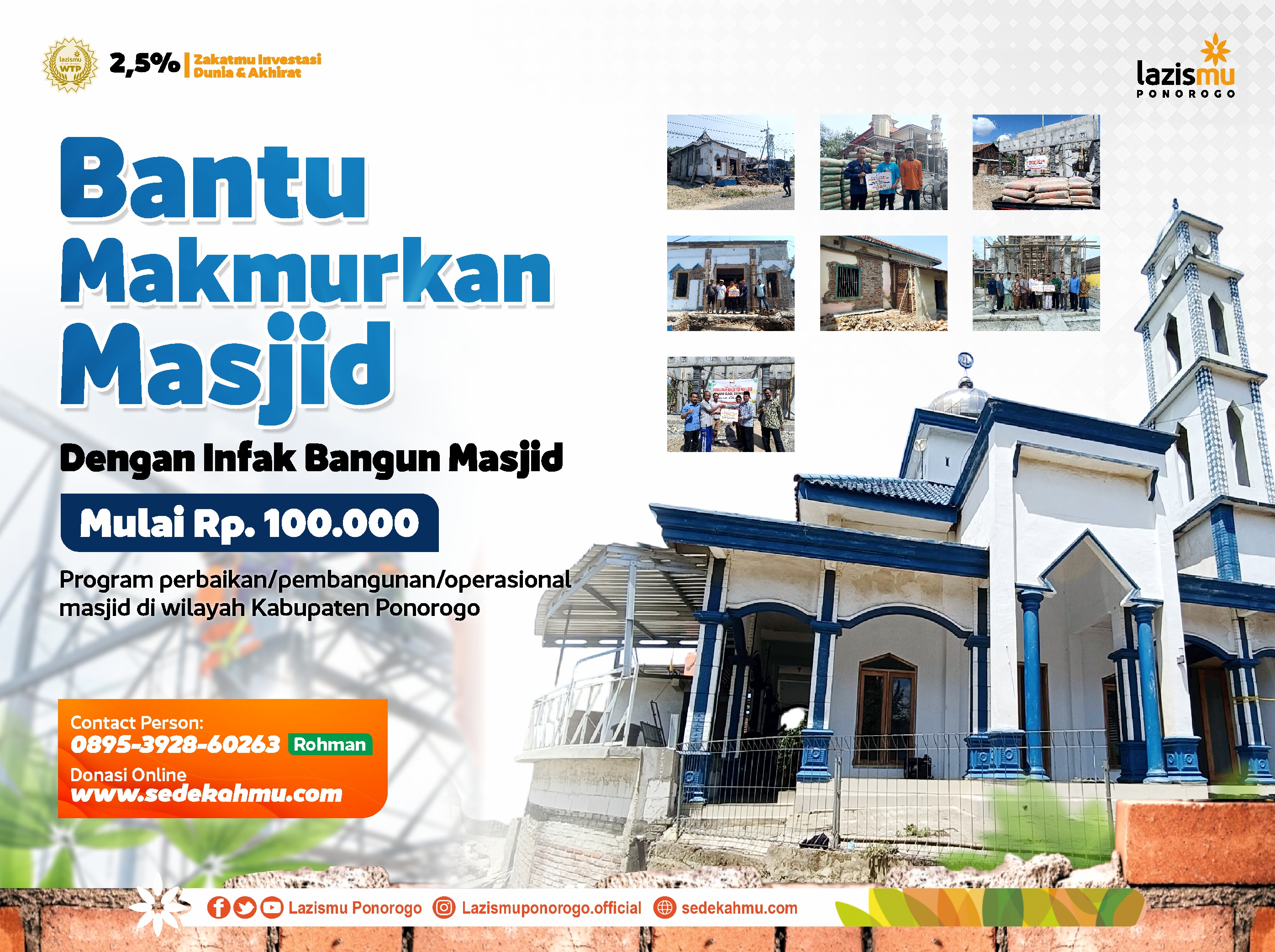 Lazismu Ponorogo mengajak Anda untuk menjadi bagian dari program Infak Bangun Masjid, sebuah gerakan kebaikan untuk memakmurkan rumah Allah dan menyebarkan manfaat bagi umat.